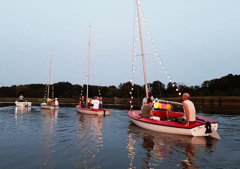 Am 31. August war es wieder soweit. Der Wassersportclub am Mellensee hatte zur Lichterfahrt auf dem Mellensee eingeladen. Bei äußerst angenehmen Temperaturen sammelten sich abends circa vierzig bunt geschmückte und beleuchtete Boote vor dem Strandbad in Klausdorf.