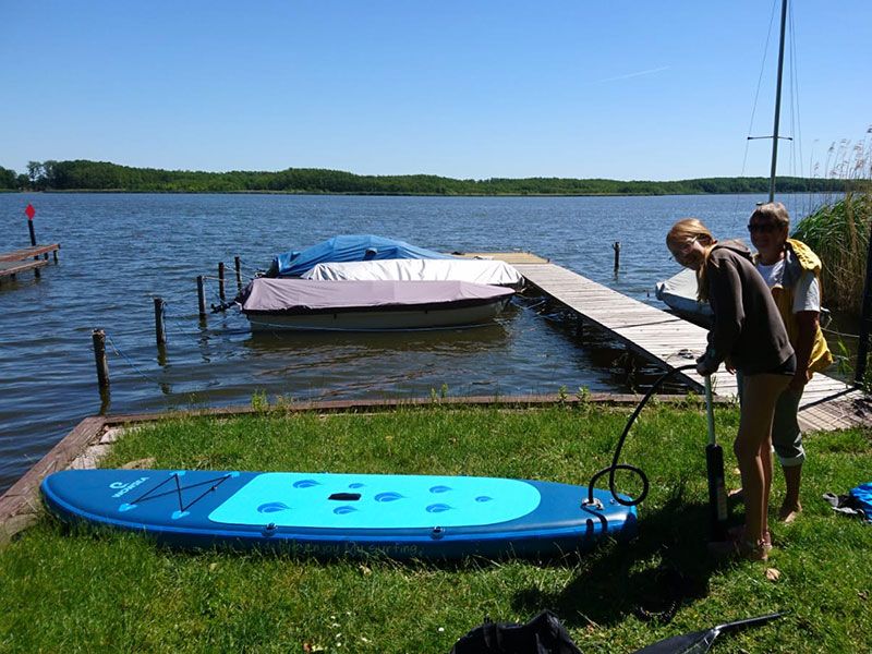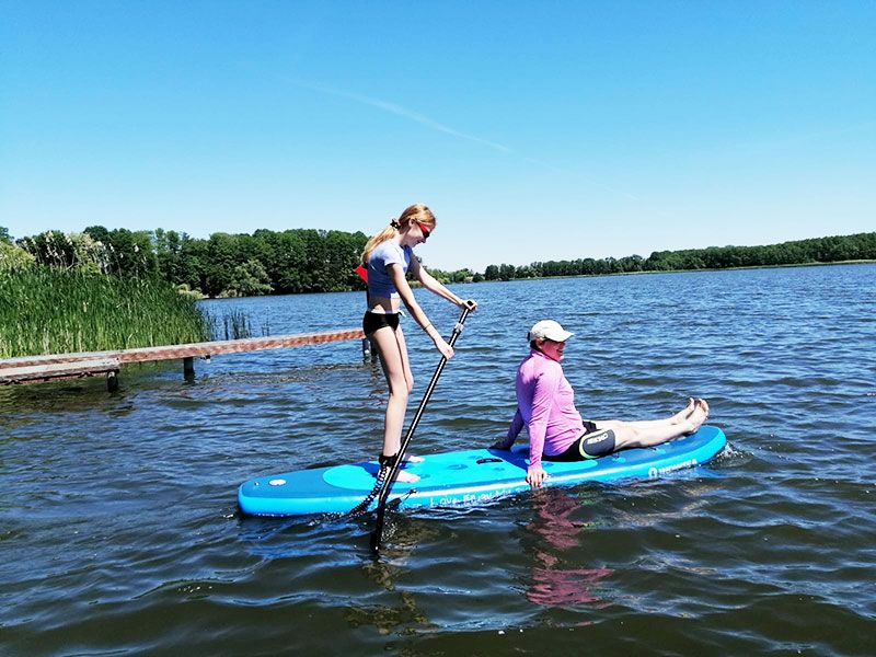 Familie Britz hatte diese Möglichkeit gleich mal genutzt. Auf dem Land wurden einige Trockenübungen geprobt, die auf dem Wasser dann noch gefestigt wurden.
